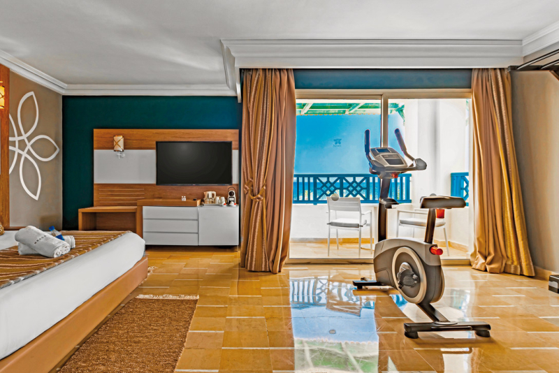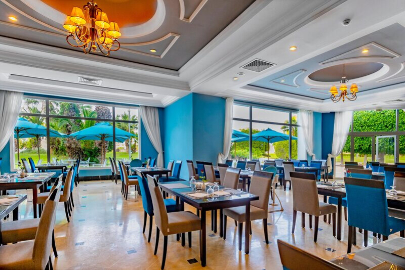 Die gepflegte Außenanlage kombiniert einen orientalischen Garten mit einem Poolbereich. Eine Sonnenterrasse lädt zum Entspannen und Verweilen ein. Es gibt einen Innen- und einen Außenpool mit Rutsche und Kinderbecken. Außerdem stehen ein Grillbereich und eine Poolbar zur Verfügung. Am hoteleigenen Strand stehen kostenfrei Sonnenschirme und Liegen bereit. Als Freizeitaktivitäten bietet das Hotel Billard, Tennis, Beachvolleyball, Quad-Fahren und Reiten. In unmittelbarer Nähe gibt es einen Golfplatz und einen Yachthafen. Am Strand werden saisonal diverse Wassersportarten, wie Surfen, Tauchen und Schnorcheln, angeboten.Wellness