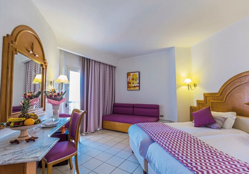 Ihr wohnt in 295 Zimmern, verteilt auf drei Gebäude mit je vier Etagen. Alle Zimmer bieten Badezimmer mit Dusche, Föhn, Heizung/Klimaanlage, Telefon, Sat-TV und Minibar. Ein Safe ist gegen Gebühr verfügbar. Balkon oder Terrasse öffnen den Blick in die Anlage, schaffen Luft und Tageslicht. Highlight: Familienfläche – Familienzimmer bieten ca. 48–53 Quadratmeter Platz.
