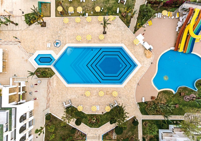 Im Riviera Hotel erwartet Euch ein lebendiges Strandhotel in Port El Kantaoui, das aktive Tage mit erholsamen Momenten verbindet. Die Anlage mit drei Gebäuden auf vier Etagen, 295 Zimmern und weitläufigen Außenbereichen wirkt übersichtlich, zugleich vielseitig. WLAN steht Euch in der gesamten Anlage inklusive zur Verfügung, sodass Ihr Planung und Kontakt elegant nebenbei erledigt. Am großen Außenpool mit fünf Wasserrutschen und separatem Kinderpool findet Ihr bequeme Liegen mit Auflagen und Sonnenschirme – am Strand ebenso inklusive. Highlight: Familien-Fokus – Fünf Rutschen, Kinderpool und Miniclub sorgen den ganzen Tag.