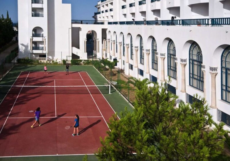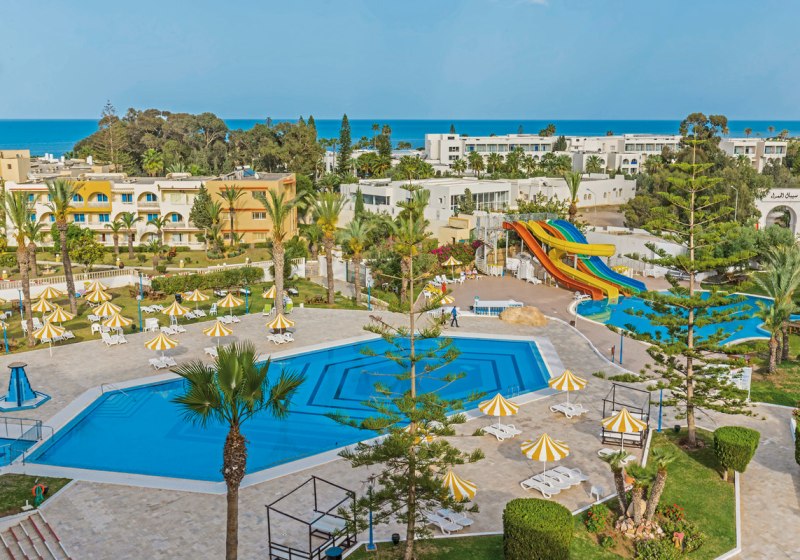 Riviera Hotel kombiniert Strandnähe, fünf Rutschen, Miniclub und ein klares Sportangebot mit tunesischer sowie italienischer Küche. WLAN ist überall inklusive, Liegen und Sonnenschirme erwartet Ihr am Pool und am Strand. Das Spa mit Hamam, Sauna, Jacuzzi und Hallenbad setzt ruhige Akzente.