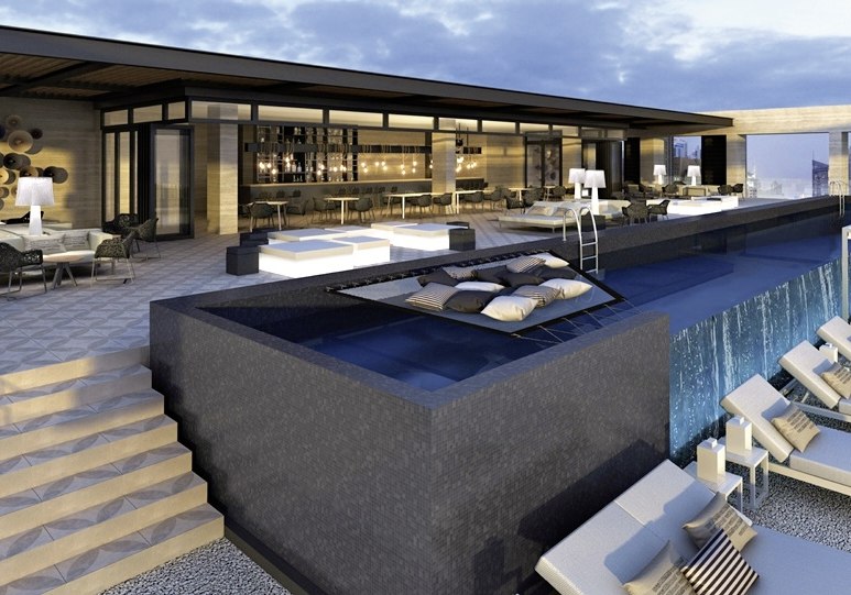 • Liegestühle • Außenpool • Sonnenschirme • Pool • Poolbar • Sonnenterrasse • Dachterrasse • Wasserpark