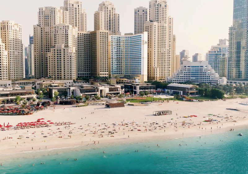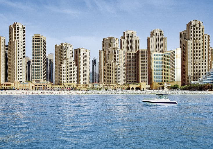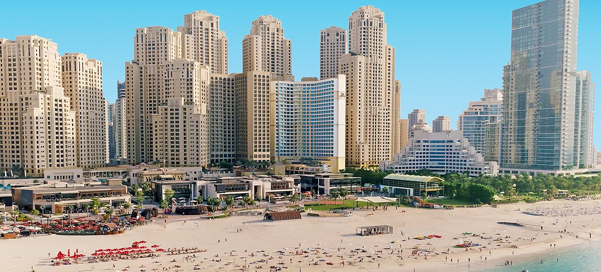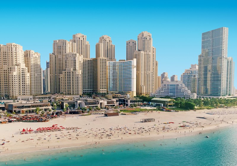 Die Lage verbindet Strandnähe und Stadterlebnis: direkt an The Walk/JBR, wenige Schritte zur Dubai Marina, rund 25 km nach Downtown Dubai und etwa 40 km zum Dubai International Airport. Das Meer liegt circa 100 Meter entfernt, Restaurants und Einkaufsmöglichkeiten säumen die Umgebung. U-/S-Bahnstation, Bus- und Bahnhof sind rund 350 Meter beziehungsweise fünf Gehminuten erreichbar.
