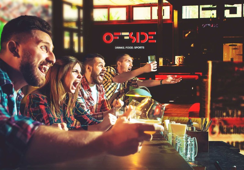 - Sportfokus: Live-Übertragungen in der Offside-Bar bringen Stadionstimmung ins Haus.
