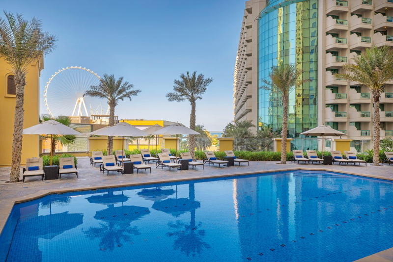 Inmitten des traumhaften Gartens befindet sich ein großer Außenpool mit Kinderbecken. Der Nachwuchs vergnügt sich außerdem im Indoor-Spielzimmer und kann im Kidsclub betreut und beschäftigt werden. Sportliche Gäste freuen sich über das Fitnesscenter mit hochmodernen Trainingsgeräten oder die verschiedensten Wassersportarten wie Schnorcheln und Paragliding, die am hoteleigenen Strand angeboten werden. Der nächste Golfplatz liegt nur rund 3 km entfernt. Abends finden im Hilton Dubai The Walk regelmäßig Unterhaltungsshows mit Live Musik statt.Wellness