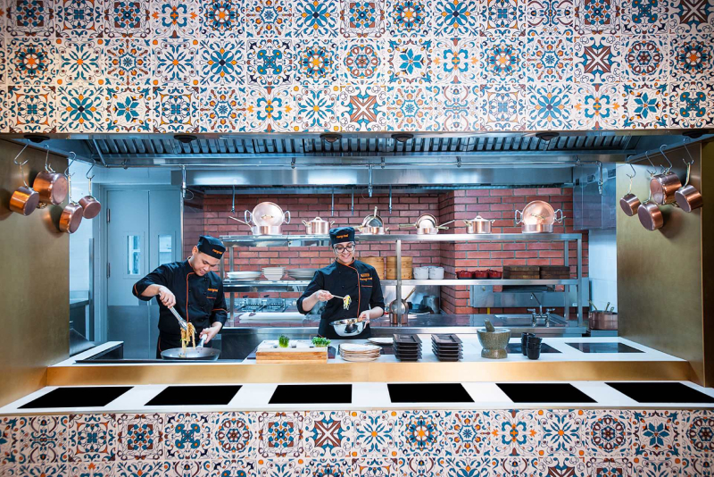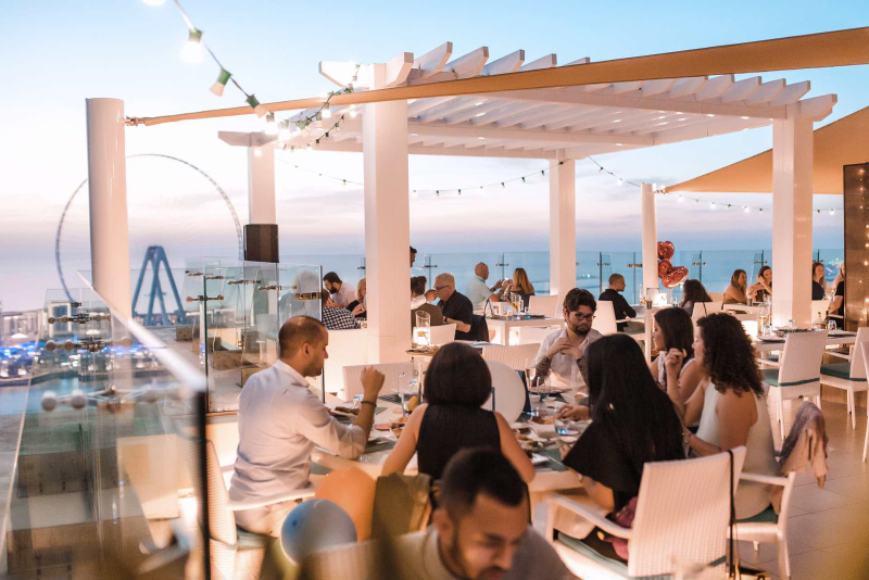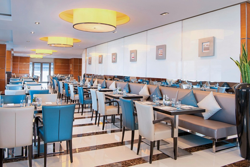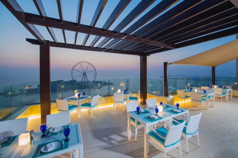 Auf dem Gelände des Hilton Dubai The Walk befinden sich drei verschiedene Restaurants mit mediterraner, asiatischer und französischer Küche. Die Gäste können sich auf Wunsch morgens am reichhaltigen Frühstücksbuffet bedienen. Mehrmals wöchentlich veranstaltet das Hotel beliebte Motto-Dinner-Abende. Zu den weiteren gastronomischen Einrichtungen gehören außerdem verschiedene Bars und Snackbars. Besonders eindrucksvoll ist die Lounge-Terrasse im 35. Stock mit einem faszinierenden Blick auf die Stadt und das Meer.Sport / Unterhaltung / Pool