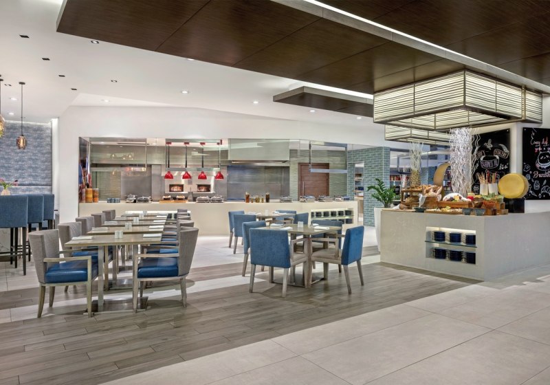 Drei Restaurants bilden das kulinarische Rückgrat, darunter eine Adresse mit mexikanischer Küche. Ihr startet mit Frühstück und könnt Euch über Mittag und Abend flexibel entscheiden – von vegetarisch über glutenfrei bis zu Diätgerichten. Live-Kochen setzt Akzente, die Atmosphäre bleibt angenehm urban.