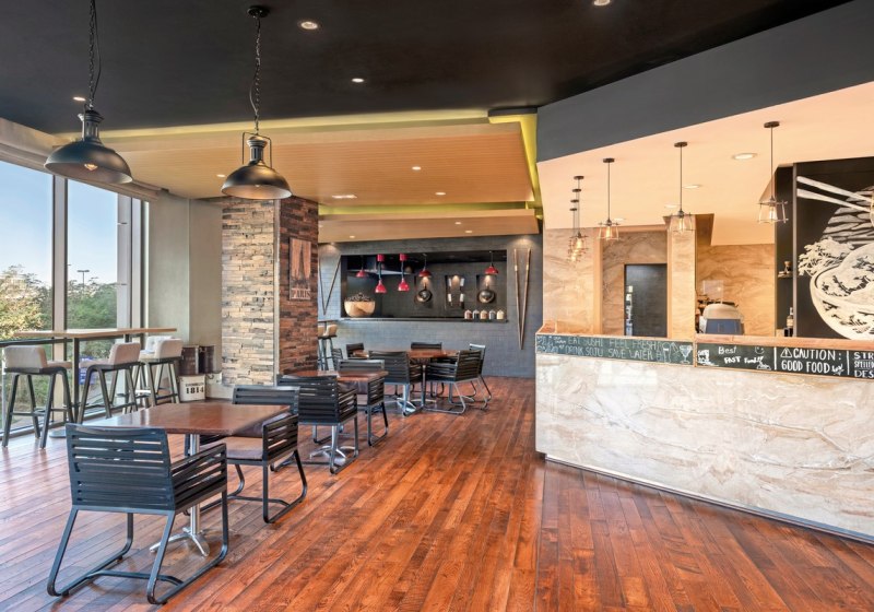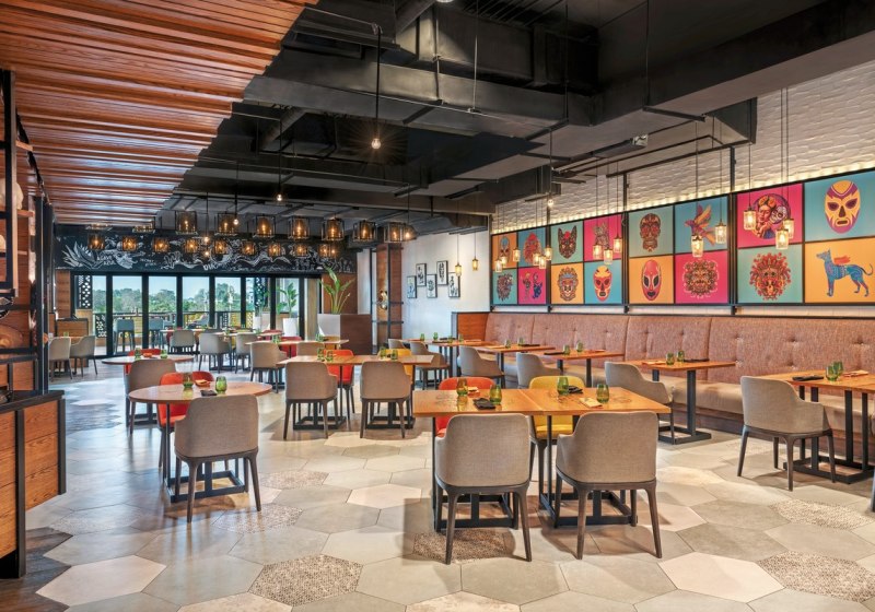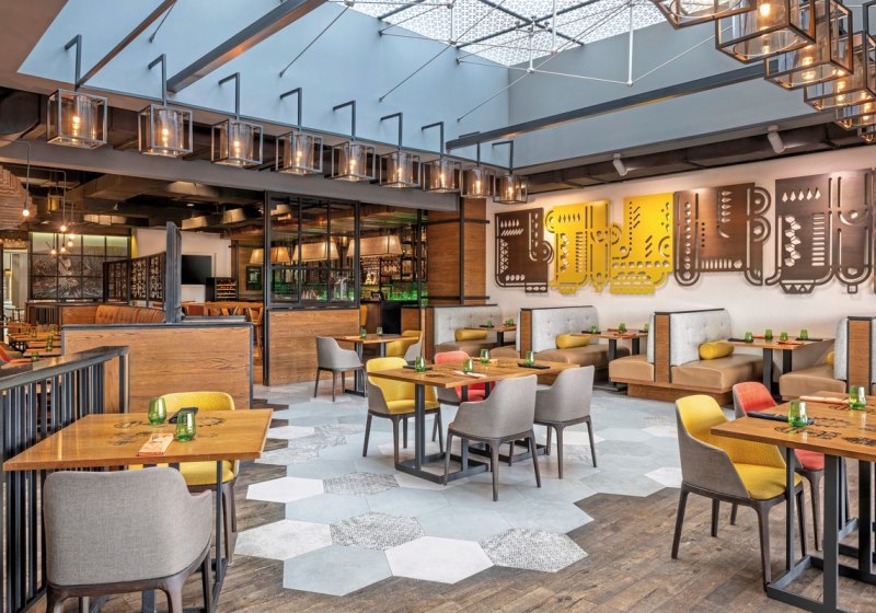 - Mexikanisch: Ein Restaurant serviert mexikanische Küche in urbanem Rahmen.