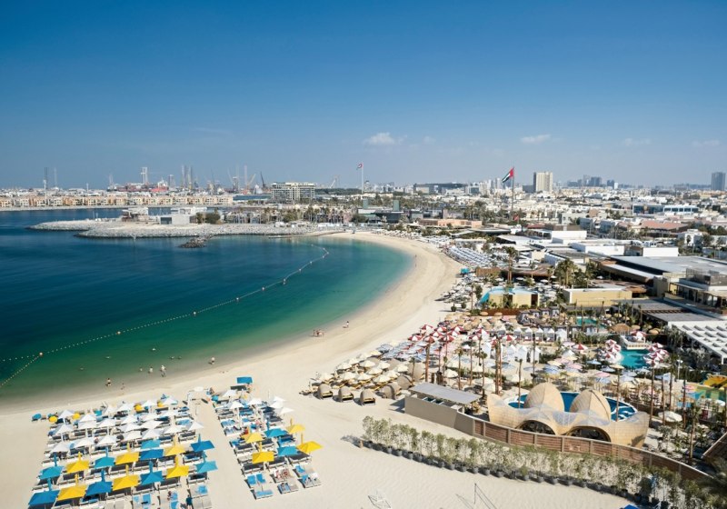 Das Hotel liegt in Dubai direkt am privaten Sandstrand im Viertel La Mer, unmittelbar neben dem J1 Beach. Ihr erreicht ikonische Anlaufpunkte schnell: zum Burj Khalifa und der Dubai Mall sind es etwa 7 Kilometer, zum Flughafen Dubai rund 14 Kilometer, zur Palm Jumeirah circa 28 Kilometer.