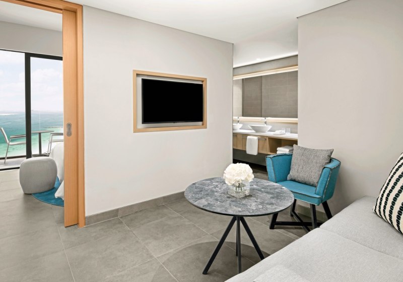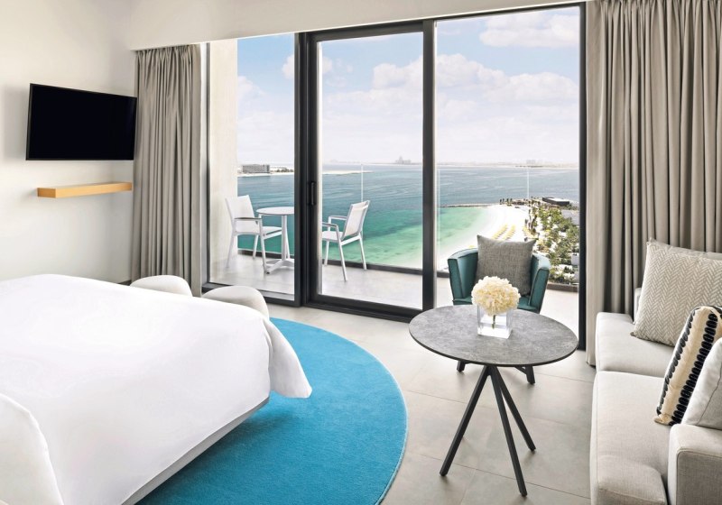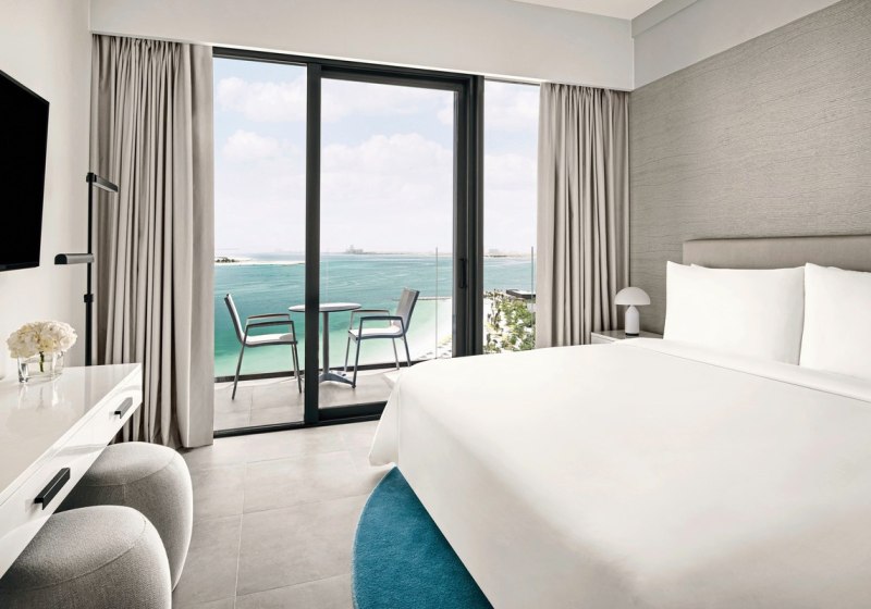 Mövenpick Resort Al Marjan Island empfängt Euch auf Marjan Island mit direktem Zugang zu einem 300 m langen Sandstrand. Drei Pools, viel Platz am Wasser und eine klare, zeitgemässe Linienführung prägen die Atmosphäre. Familien schätzen den Kids Adventure Club mit rund 200 m² und den Outdoor-Spielplatz, Paare den ruhigen Strandabschnitt und die Rooftop-Bar für Abende mit Aussicht.