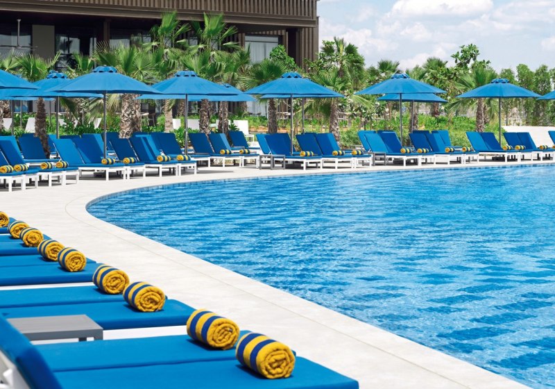 Im Haus verbindet Ihr entspannte Strandtage mit Komfort: Liegen, Sonnenschirme und Handtücher sind inklusive, das Fitnesscenter hält Euch in Bewegung. Kulinarisch stehen vier Restaurants bereit, ergänzt von einer Rooftop-Bar. Das Spa setzt auf wohltuende Behandlungen, Massagen sind gegen Gebühr buchbar. Highlight des Strandes: der schwimmende Wasserpark, der Eurem Tag eine belebende Note gibt.