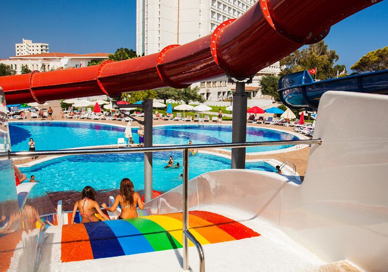 Das Resort wirkt wie eine kleine, gut organisierte Ferienwelt: Weitläufige Außenbereiche mit zwei Außenpools, Kinderbecken, Wasserrutsche und Wasserpark treffen auf eine helle Lobby mit 24-Stunden-Rezeption. Ein Minimarkt, Shops und Souvenir-Store vereinfachen Besorgungen. WLAN ist im Hotel gegen Gebühr verfügbar; in den Zimmern steht kostenloses Internet bereit.