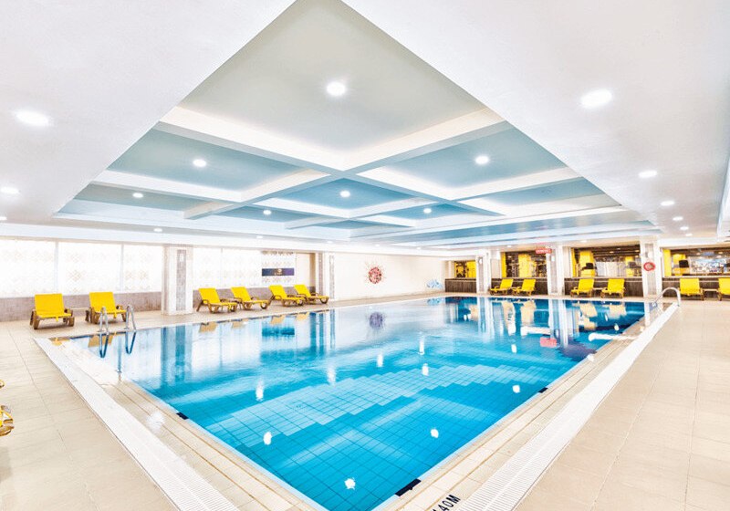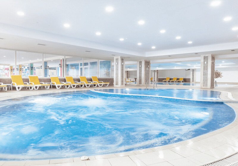 • Liegestühle • Hallenbad • Außenpool • Sonnenschirme • Pool • Poolbar • Sonnenterrasse • Badetücher • Wasserrutsche • Wasserpark