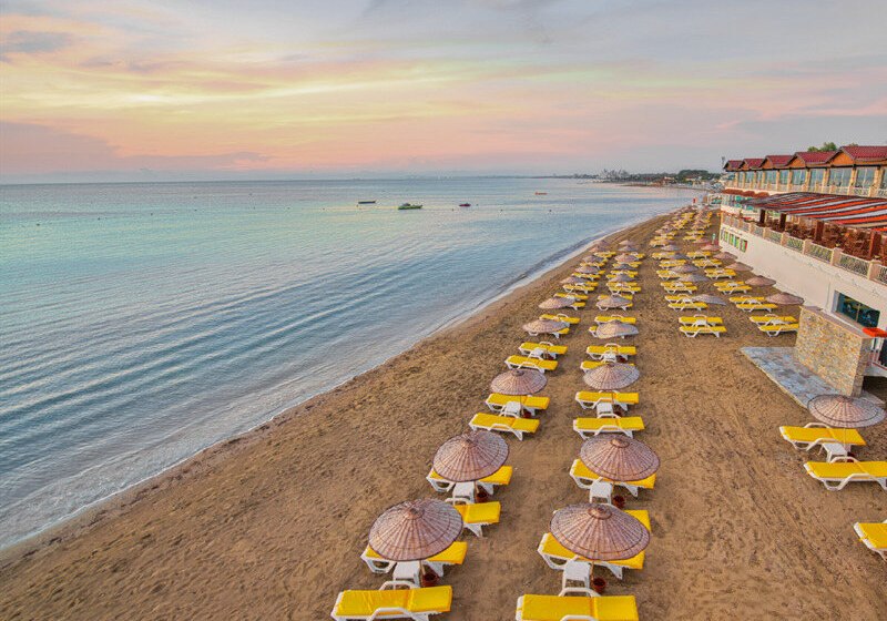 Ihr bewegt Euch zwischen Lobby, Cafés und fünf Restaurants durch gepflegte Außenbereiche mit zwei Außenpools, Wasserrutsche und ausreichend Sonnenliegen und -schirmen am Pool und Strand. Die All-Inclusive-Plus-Verpflegung mit Snacks, alkoholfreien und alkoholischen Getränken hält Euch flexibel durch den Tag. Sportliche Akzente setzt Ihr im Fitnessraum, auf dem Tennisplatz oder bei Aerobic und Tischtennis. Highlight: Privater Strandzugang mit Liegen und Schirmen, ergänzt durch Pools und Wasserrutsche.