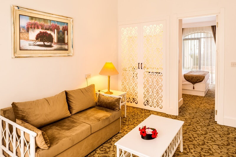 Die Zimmer im Olive Tree Hotel sind komfortabel und gut ausgestattet. Sie verfügen über eine Klimaanlage, einen Balkon, getrennte Schlafzimmer und Teppichböden. Es gibt auch Annehmlichkeiten wie ein Doppelbett, einen Haartrockner, einen Internetzugang, eine Minibar, einen Safe, einen Kaffee-/Teezubereiter und einen Fernseher. Einige Zimmer bieten sogar einen herrlichen Meerblick.