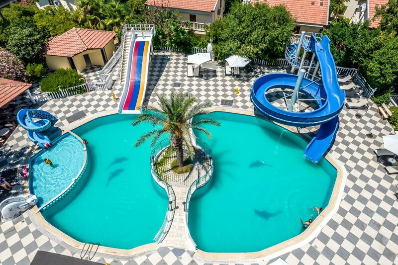 Die Anlage bietet 223 Zimmer, eine 24-Stunden-Rezeption und mehrsprachiges Personal. Ihr profitiert von Außenpool, Kinderbecken und einem Wasserpark mit Rutschen. WLAN steht gegen Gebühr bereit, Parkplätze sind kostenfrei. Der hoteleigene Supermarkt, eine Snackbar und die Poolbar decken den täglichen Bedarf.