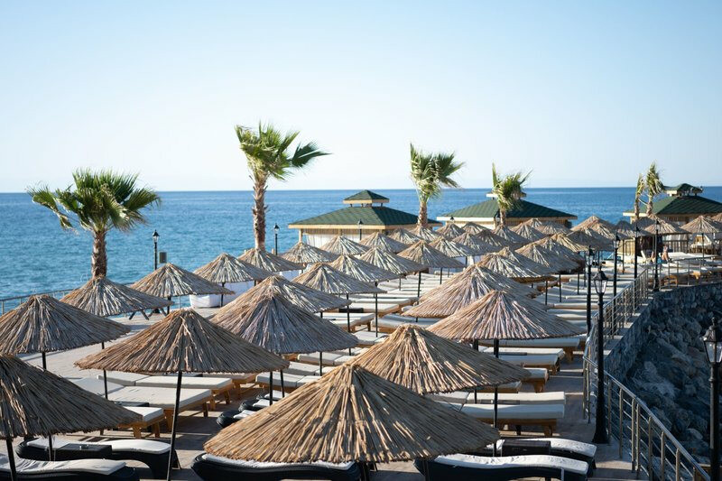 - Strandkomfort: Liegen und Schirme am Strand ergänzen den Pooltag.