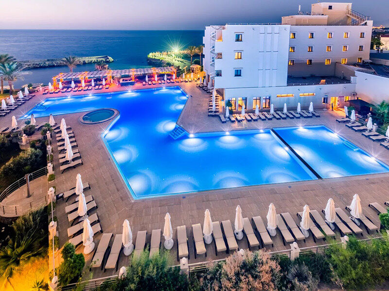 Im Vuni Palace Hotel & Casino wohnt Ihr direkt am privaten Sand- und Kiesstrand von Kyrenia (Girne). Das Haus verteilt 258 Zimmer auf mehrere Gebäude – darunter Haupthaus, Loveboat, Hilltop und Springtop – und verbindet Badeferien mit städtischer Nähe. Casino, Shows und Live-Musik setzen abends Akzente, tagsüber lockt der Strand.