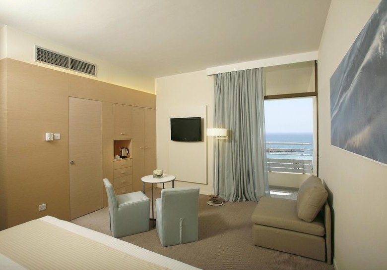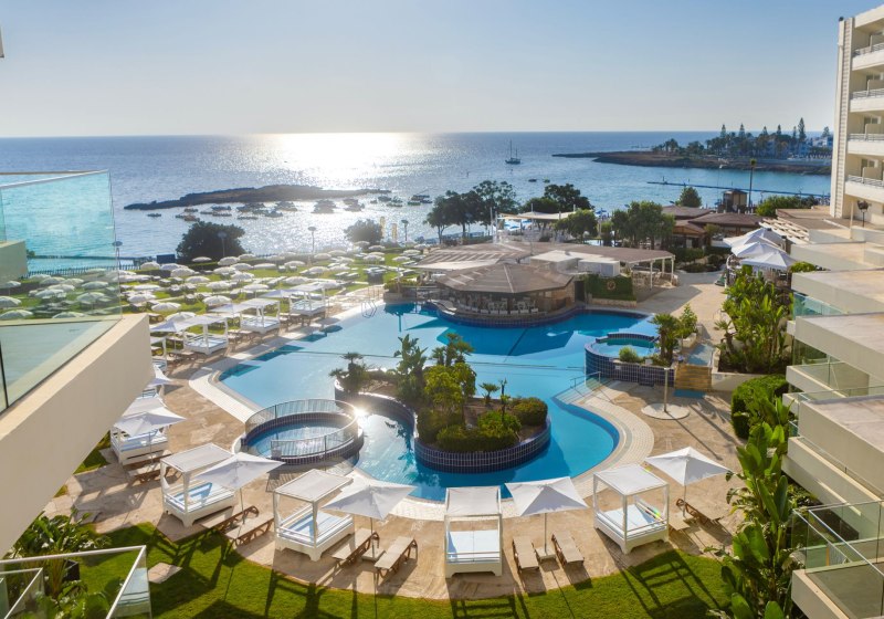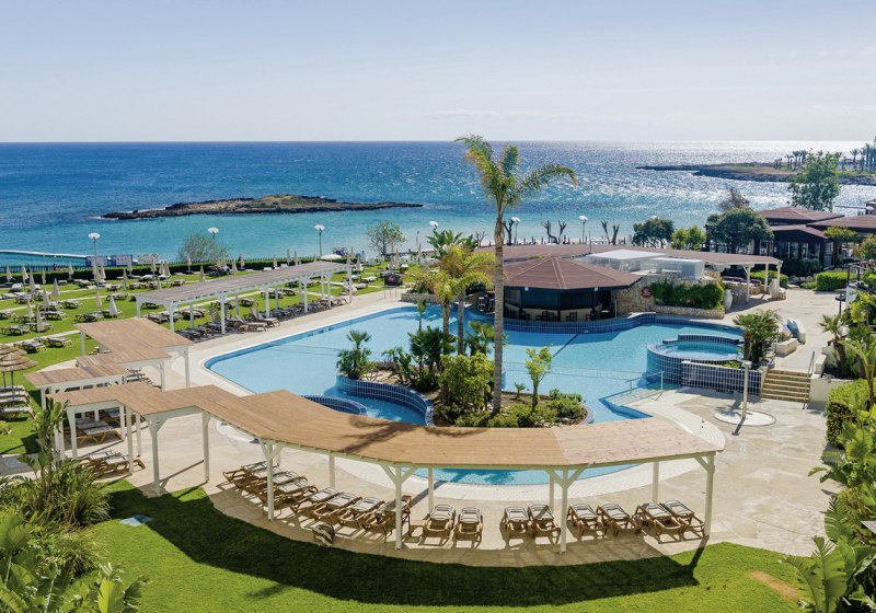 Im Capo Bay Hotel wohnt Ihr direkt an der Feigenbaumbucht mit ihrem flach abfallenden Sandstrand, ausgezeichnet mit der Blauen Flagge. Zwischen Meerblicken, zwei Süßwasserpools und ruhigen Lounges wirkt der Aufenthalt gelassen und klar strukturiert. Familien finden mit separatem Kinderbecken und Familienzimmern viel Platz, Paare schätzen die Terrasse des Restaurants Elea über dem Wasser. Wer gern aktiv bleibt, nutzt die 3 Padelplätze und den Pickleballplatz, bevor Ihr abends Live-Musik in der Lobby lauscht.