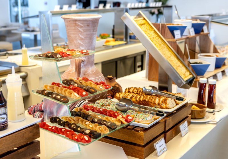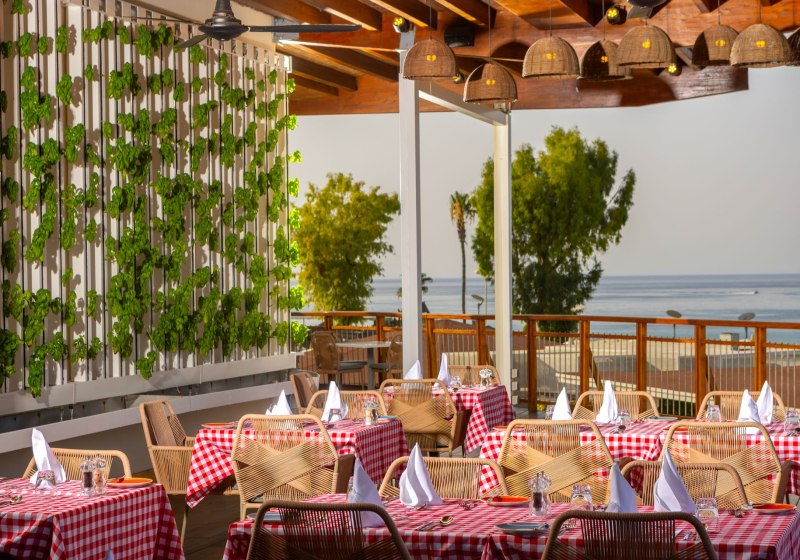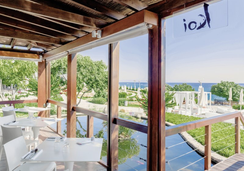 Ihr esst mit Blick auf das Meer im Restaurant Elea, dessen Terrasse die Feigenbaumbucht ins Bild rückt. Vielfalt bringen das À-la-carte-Restaurant Koi als Bar/Restaurant, die italienische Cucina und Mama’s Poolrestaurant & Tavern. Dazu kommen die Lobbybar Bitter Lemon’s und die Poolbar für den unkomplizierten Zwischenton.
