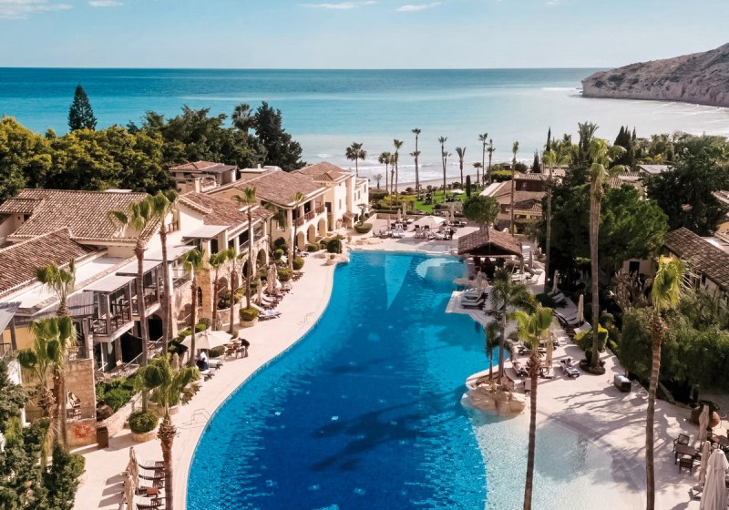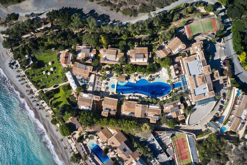 Das Gesamtbild: ein 5‑Sterne‑Resort (Kategorie offiziell), 2002 erbaut und 2017 renoviert, mit durchgängiger WLAN‑Abdeckung, kostenfreien Parkplätzen und hilfreichen Services vom Concierge bis zum Friseursalon. Highlight: Direktlage an der Pissouri Bay mit Blauer Flagge und 169 Suiten als klare Struktur.