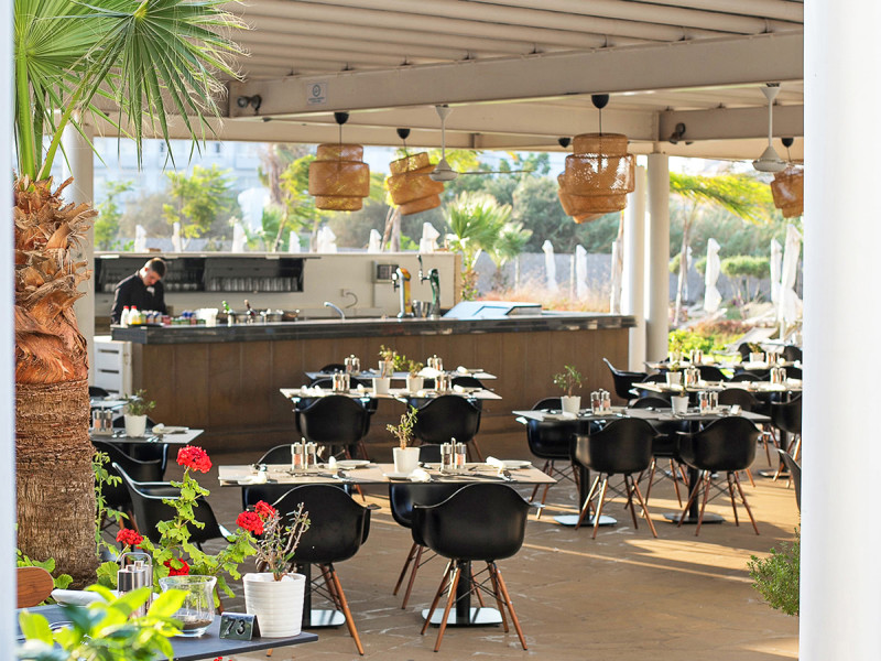 Ihr wählt aus drei Restaurants mit Außenterrasse; dazu kommen mehrere Bars, eine Poolbar und eine Snackbar. Die Taverne „Basilikos“ setzt einen regionalen Akzent in entspannter Umgebung. Verpflegungsoptionen reichen von Frühstück bis All-Inclusive, inklusive vegetarischer Angebote, Kindermenüs und Diätgerichten. Highlight: Drei Restaurants mit Freiluftplätzen.