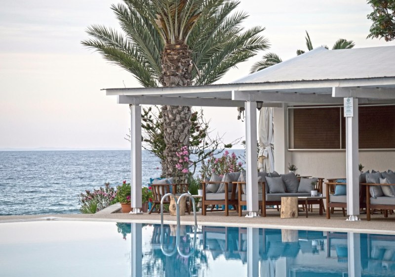 Familien schätzen den Spielplatz, das Kinderbecken und den Miniclub, Paare die ruhigen Sitzecken und die Abendstimmung mit Live-Musik. WLAN nutzt Ihr in der gesamten Anlage kostenfrei, gegenüber warten Tavernen und ein Supermarkt. Für Strandtage liegt Ihr vorn, für Ausflüge hilft die Bushaltestelle in Hotelnähe.