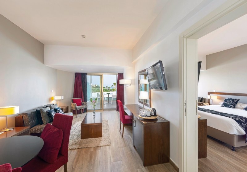 • Klimaanlage • Balkon (je nach Zimmerkategorie) • Kühlschrank • Haartrockner • Sitzecke (je nach Zimmerkategorie) • Minikühlschrank • Minibar (gegen Gebühr) • Telefon • Safe (kostenfrei) • Meerblick (je nach Zimmerkategorie) • Raucherzimmer • Schlafsofa • Kaffee-/Teezubereiter • Fernseher • rollstuhlgerechte Zimmer (auf Anfrage) • WiFi • Landblick • Poolblick • Schallisolation • Holz/Parkett