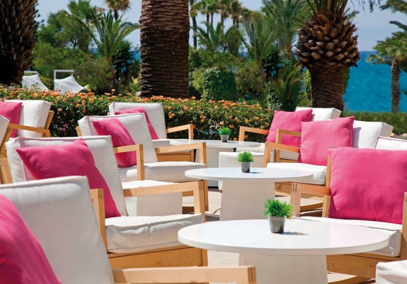 Im Sandy Beach Hotel & Spa wohnt Ihr direkt am Sand- und Kiesstrand der Larnaca-Bucht. Zwei Außenpools mit breiten Sonnenterrassen rahmen die Badebereiche, Liegen, Schirme und Badetücher warten sowohl am Pool als auch am Strand. Die öffentlichen Bereiche wirken aufgeräumt und klar strukturiert, von der 24-Stunden-Rezeption über Aufenthaltsräume bis zu Cafés, Bars und einer Taverne. Familien finden mit Kinderpool, Spielplatz und Miniclub passende Rückzugsorte, während Paare den ruhigen Rhythmus zwischen Meer und Pool schätzen.