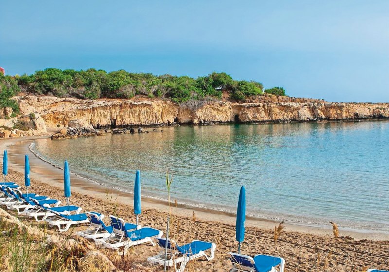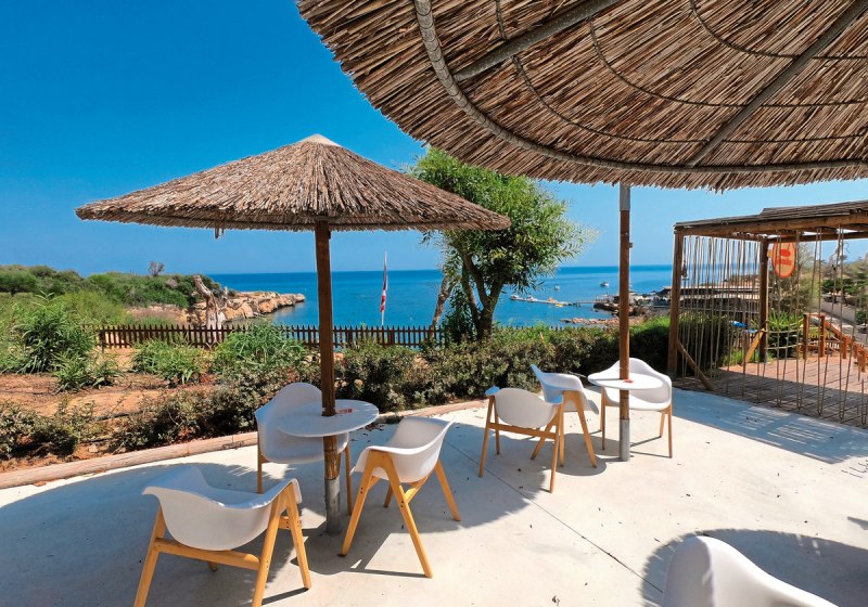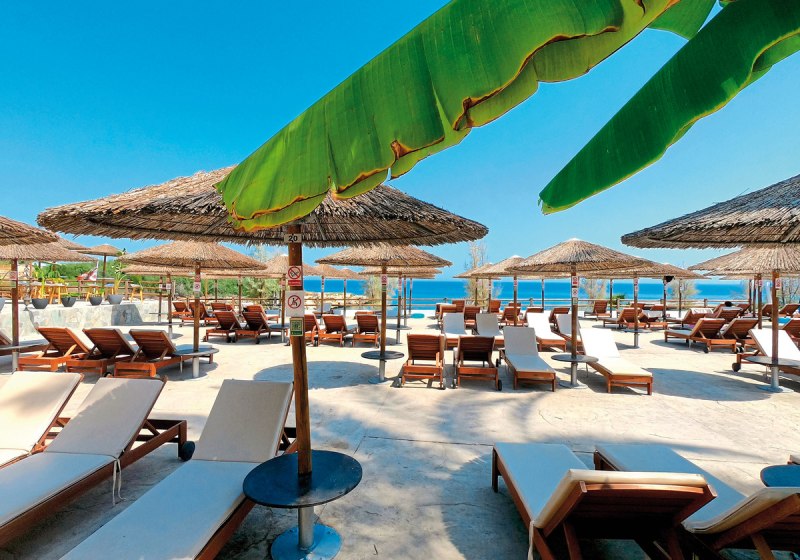 - Komfort am Meer: Liegen und Schirme stehen am Pool und Strand bereit.